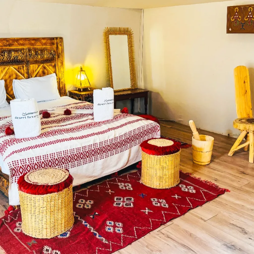 Experience the ultimate luxury adventure in the heart of the Sahara. Our Luxury Desert Camp offers a unique opportunity to escape the hustle and bustle of everyday life and immerse yourself in the beauty of the desert.
